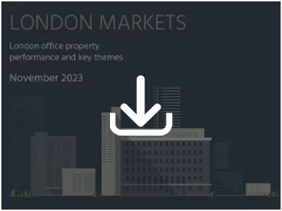 Occupier take-up increased to 2.9 million sq ft in Q3, 30% higher than in Q2 and 5% above the 5-year quarterly average. Despite the uplift in demand the overall availability rate was effectively unchanged at 9.1% in Q3, with an offsetting volume of refurbishments and new developments brought to market. Investment activity increased in Q3 and totaled £1.4bn across 29 transactions. The average deal size remained low at £48 million, which reflects the ongoing issues in raising debt for larger acquisitions. Office yields have moved out over 2023 more than any other major property sector and Central London offices annual total return was -14% in September.